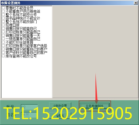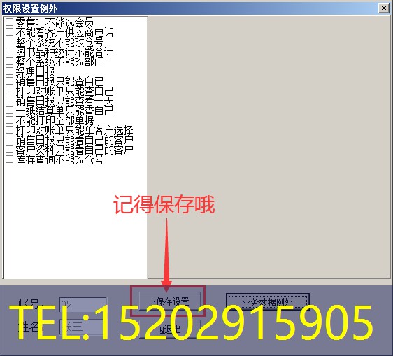 | 温馨提示:设置此权限后的帐号只能查询到此帐号登陆软件所开的进、销、退、订、零售、盘点、调拔单,无法看到其他帐号开的单,目前此功能仅限远程版(大客户版)版本日期是2022年2月份之后的才可以